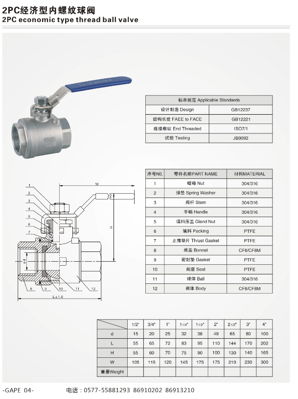 螺紋類型: G•NPT.BSPT.BSP.DIN259/2999